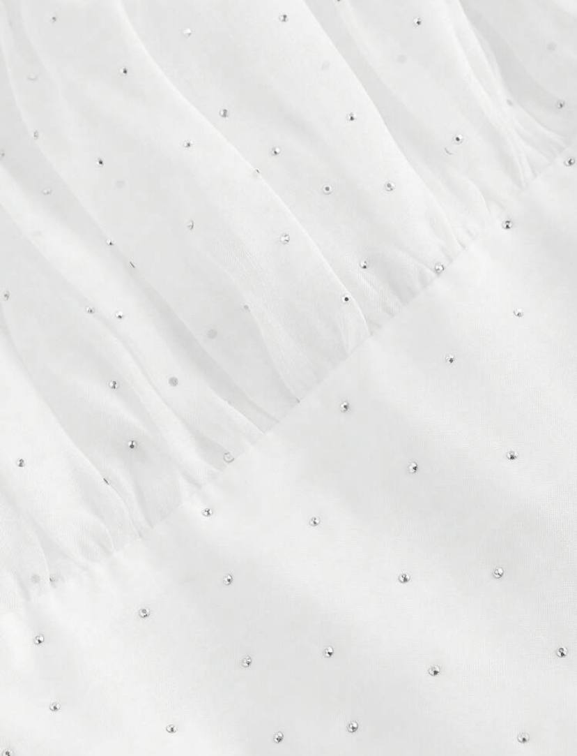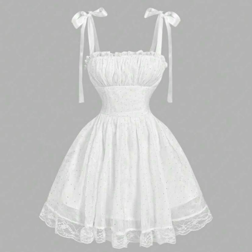 پیراهن توری پاپیونی که خیلی وایب پرنسسی و الگانتی داره و برای مهمونی های تابستونی پیشنهادش میدم و کمرش طوری طراحی شده که شما رو باریک تر نشون میده