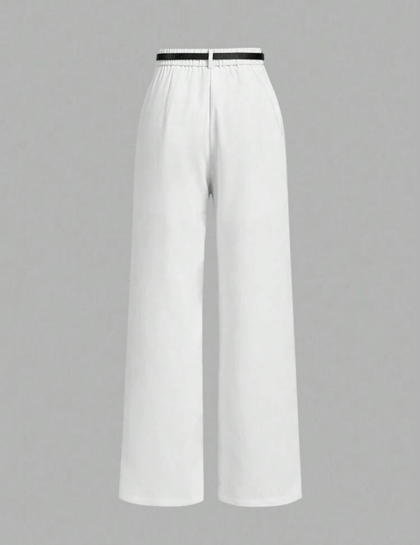 شلوار سفید کلاسیک به همراه یک کمربند که اون رو خاص تر کرده و باعث شده متمایز تر بنظر برسه