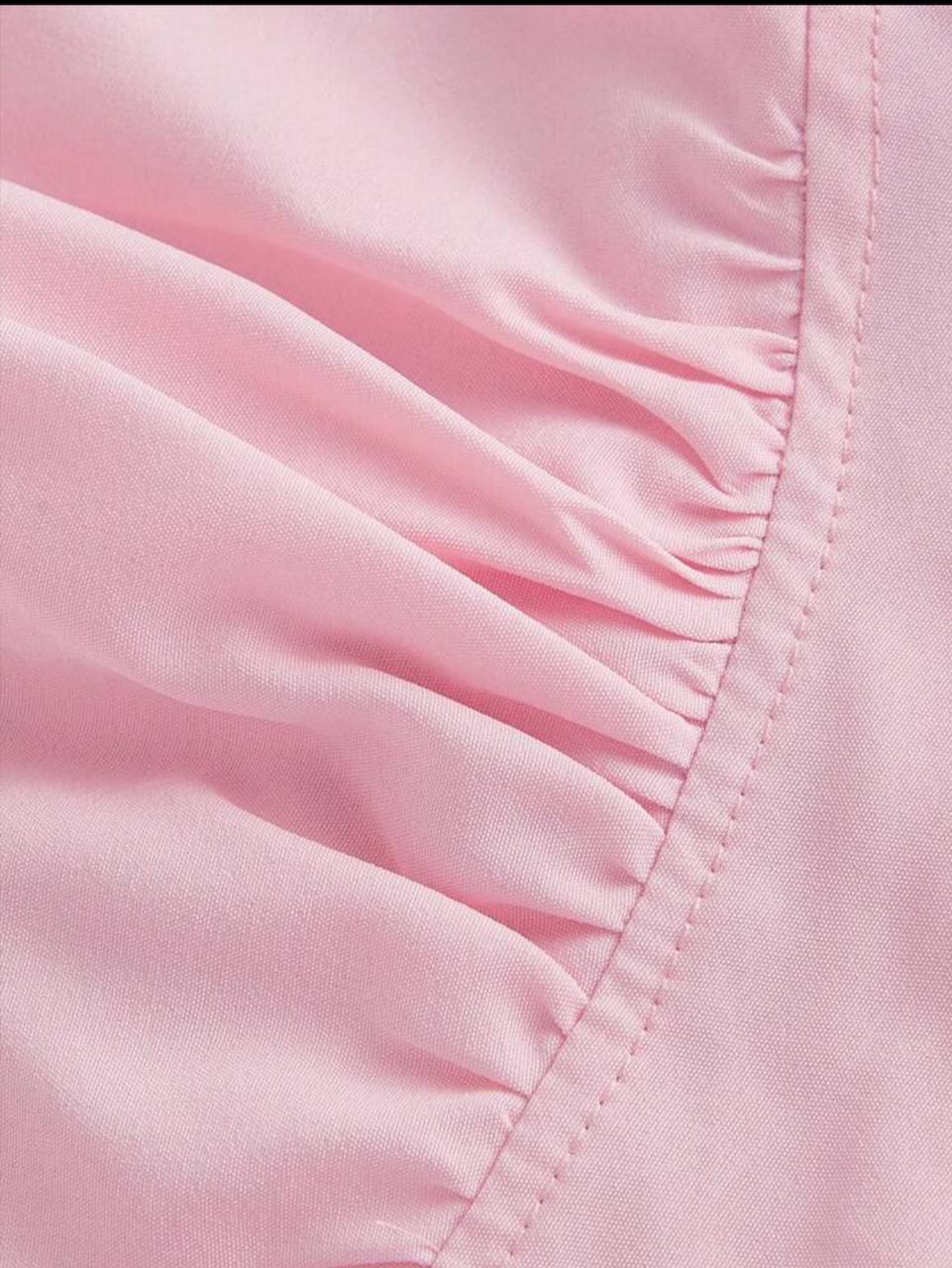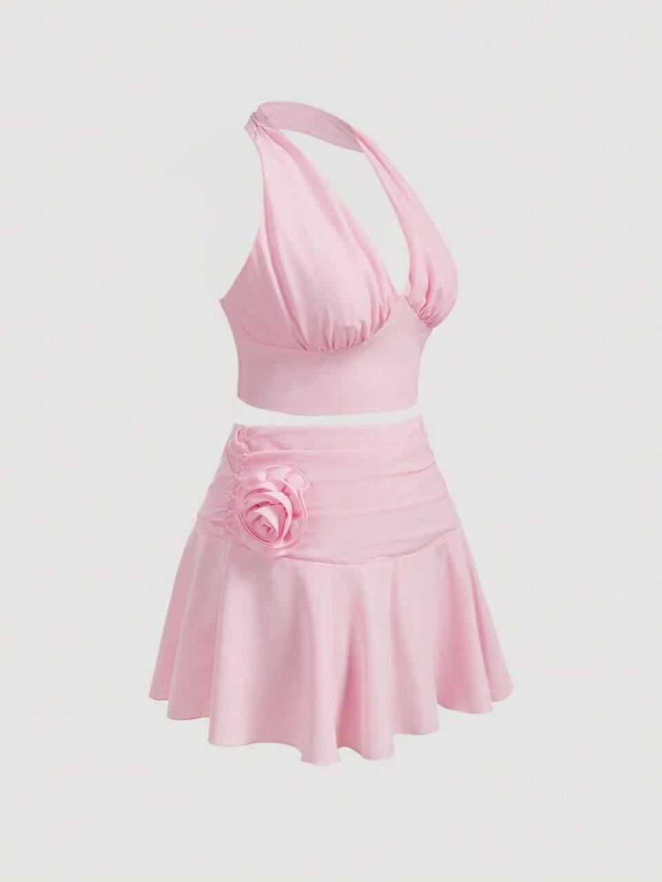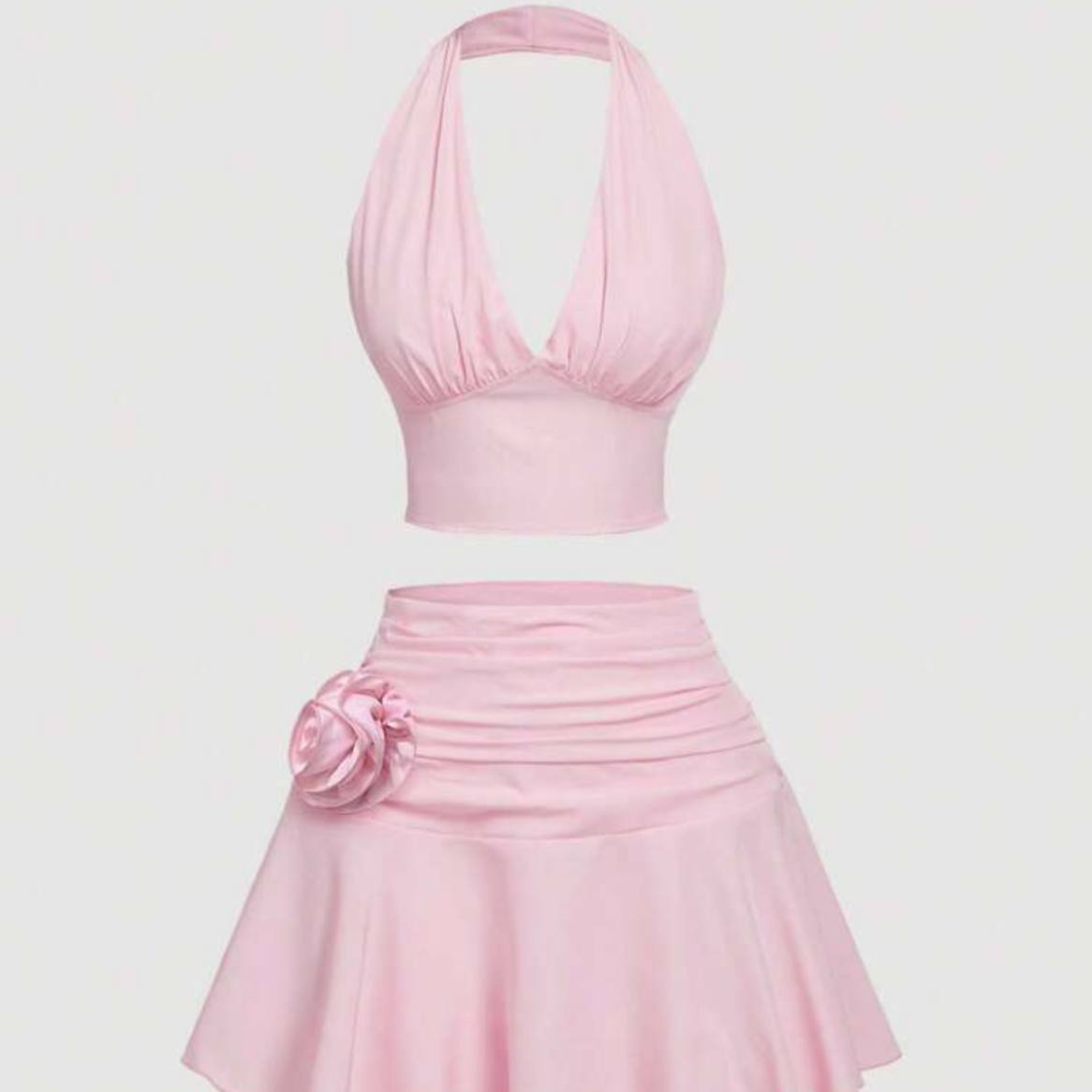 LuveeفروشگاهDenayست صورتی تاپ چیندار و دامن کوتاه | SHEIN MOD Ruffled Top & Mini Skirt Set