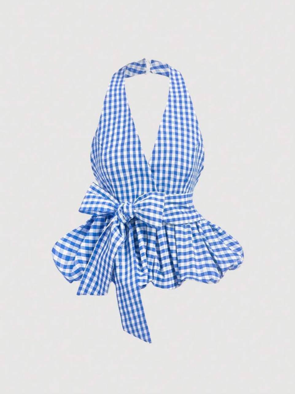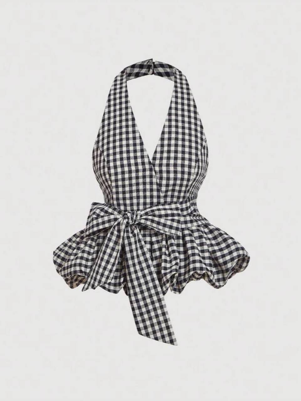 Luveeفروشگاهلباس های مهمانیتاپ پلیسه ای پشت گردنی با پاپیون شین